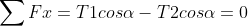 Acording to the previous free body diagram we know that both tensions should have the same magnituds as the cables make equal angles with the ceilling. Eitherway this can be seen and proved easily from the summation of all forces acting along the x direction as follows:
