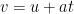 where v is final velocity, u is initial velocity, a is acceleration, s is displacement and t is time of motion.
