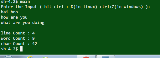 printf("Enter the Input ( hit ctrl + D(in linux) ctrl+Z(in windows)