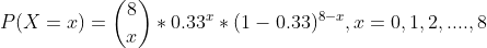 X ~ Binomial(n = 8, p = 0.33)