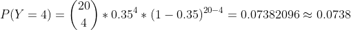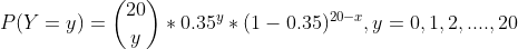 Y ~ Binomial(n = 20, p = 0.35)