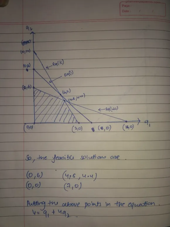 Only those points lying on the shaded area are feasible according to the constraints given above. Any other point will not be feasible.