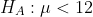 Now the claim is mean processing time is less than 12 days so the hypothesis will be