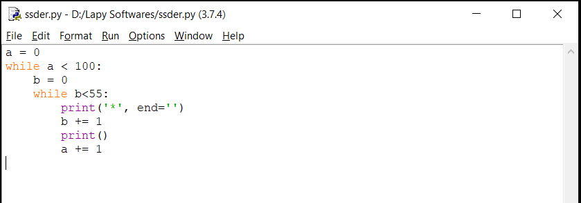 Here we can see that there is a nested while loop. In the first loop the condition satisfies when variable a is lesser then 100 then it enters the second loop if the b value is < 55. So both the conditions are true hence it will be in the inner loop.