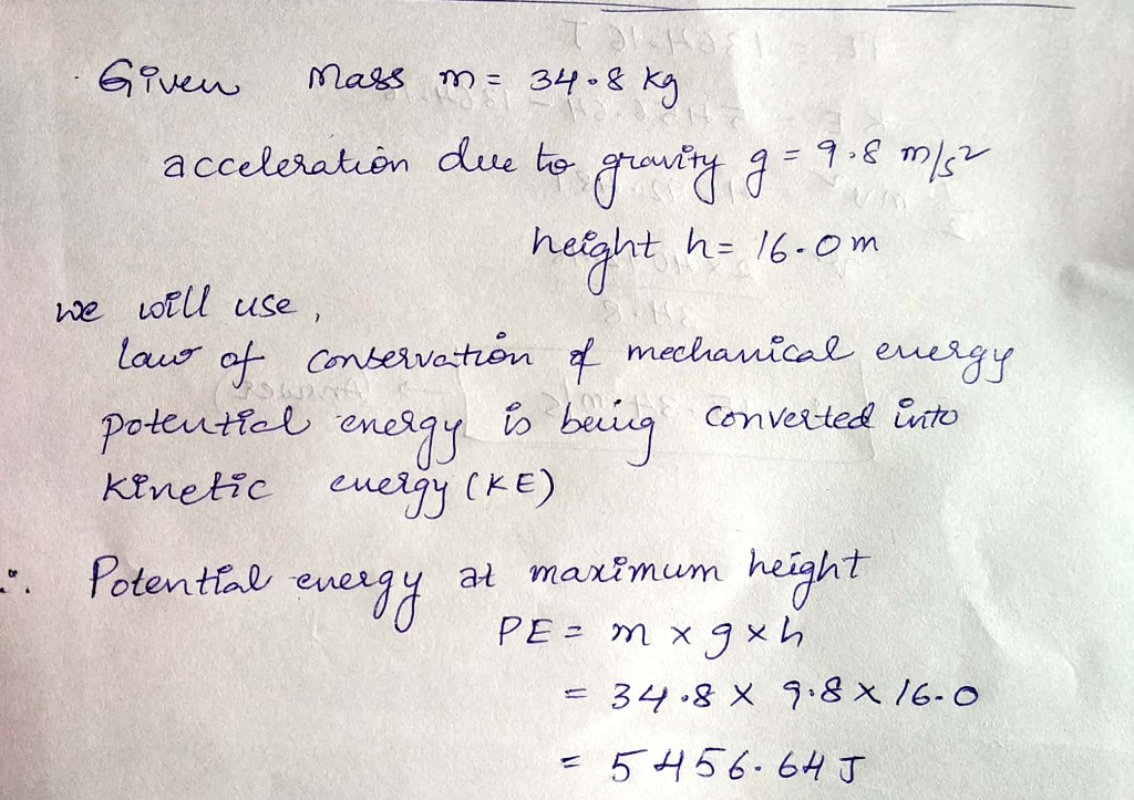 A 34.8-kg child starting from rest slides down a water slide with a vertical height of 16.0 m. (Neglect friction.)