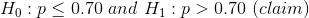 Claim: A news channel claim that over 70% of the students are opposed to the plan to increases student fees that is p > 0.70