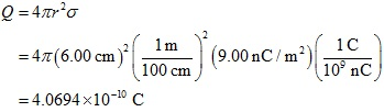 Substitute 6.00 cm for r and 9.00 nC/ m2 for