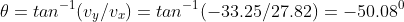 So, speed = ux = 30 cos(220) = 27.82 m/s