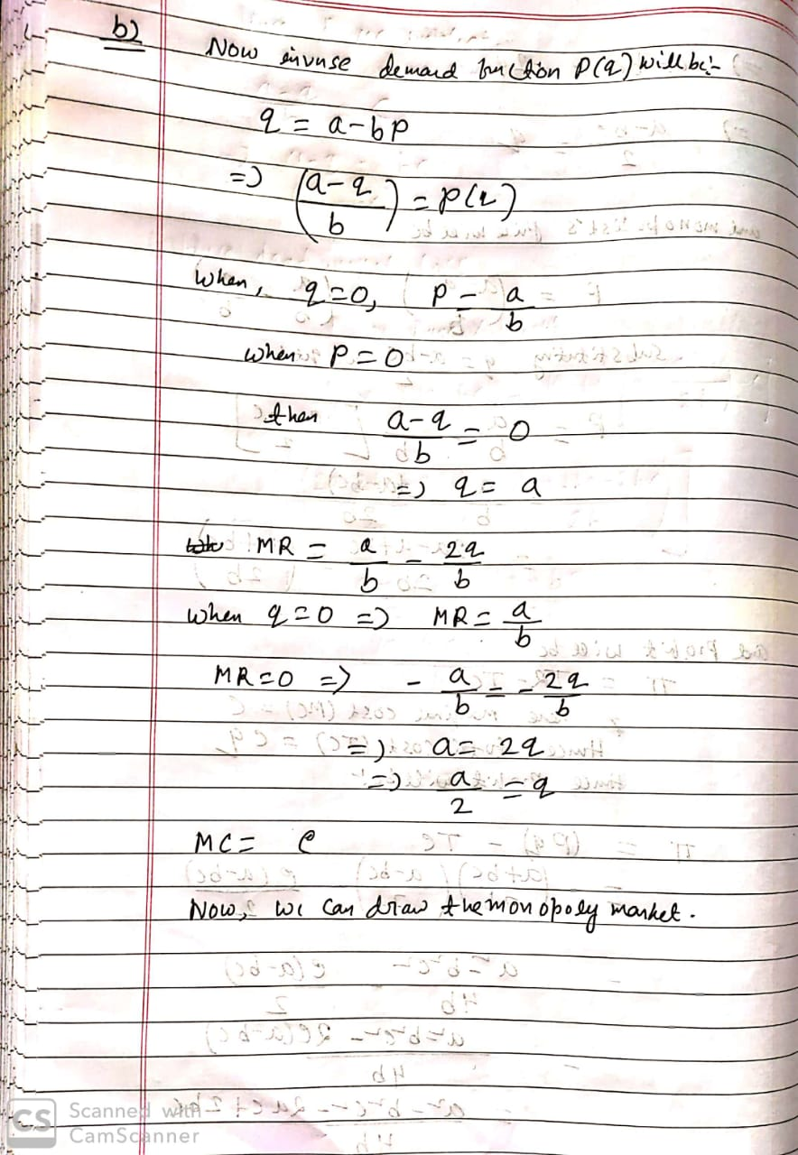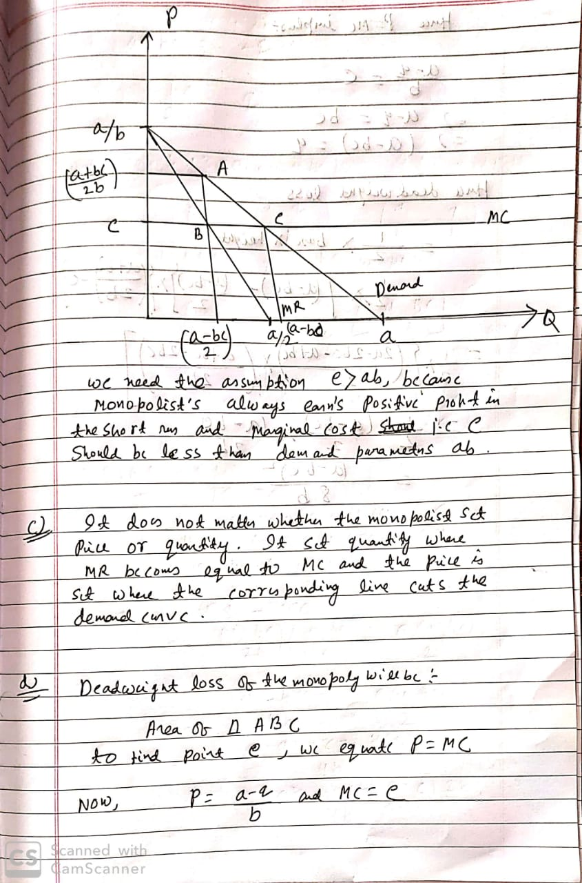 (d) Calculate the deadweight loss of monopoly. (e) A change in b