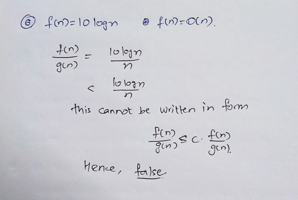 If f(n)= 10* log n then Big-O of f(n) is O(n)