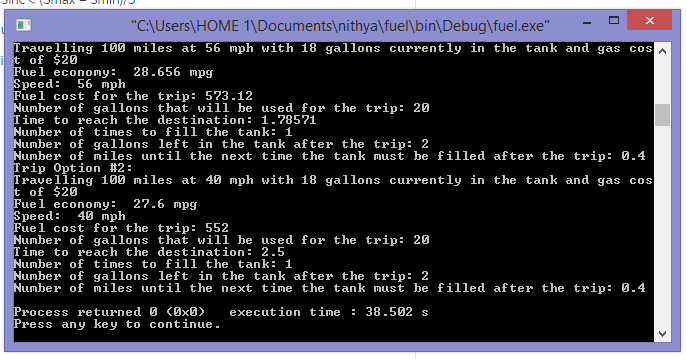 cout<<"Maximum Fuel Economy: "<<mpg[maxi]<<" mpg