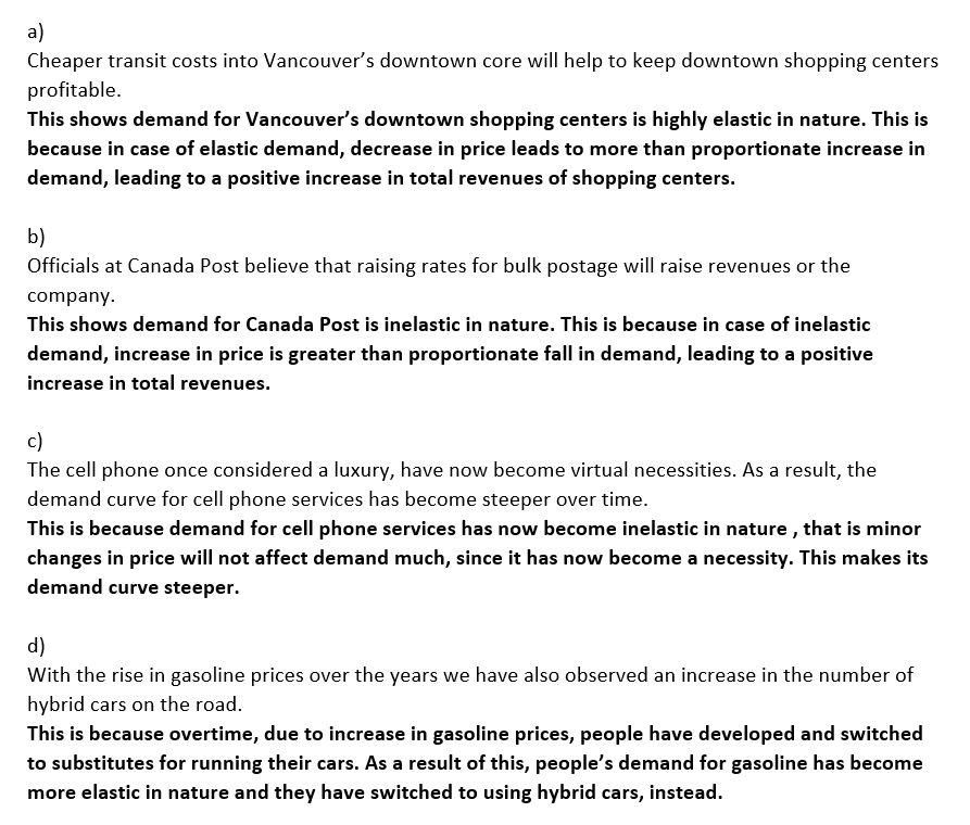 Use an elasticity concept to explain each of the