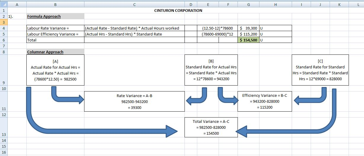 Required: 1. Break down the total variance for labor into a rate variance and an efficiency variance using the columnar and formula approaches.