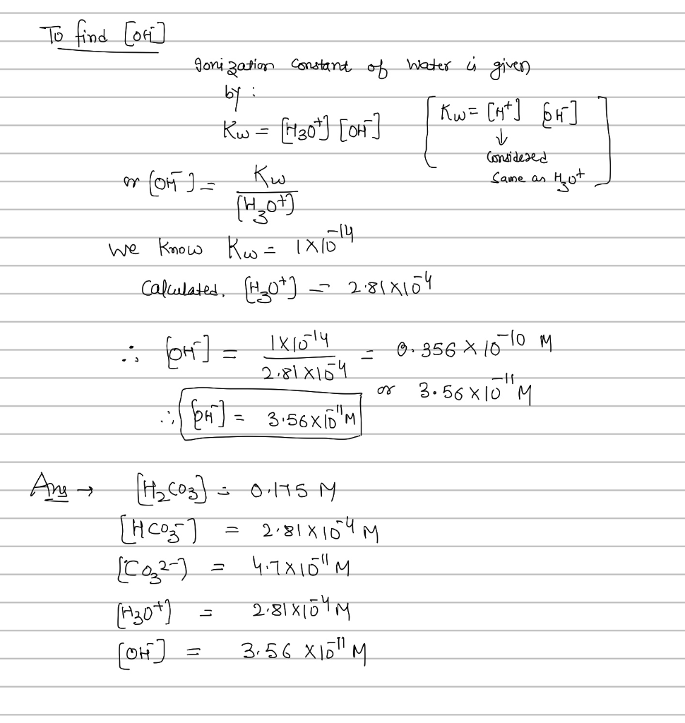 of H2CO3. H2CO3], [HCO−3], [CO2−3], [H3O+], [OH−] = Enter your