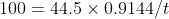 And the speed of lift: v = 100/44.5 = 2.26 m/s