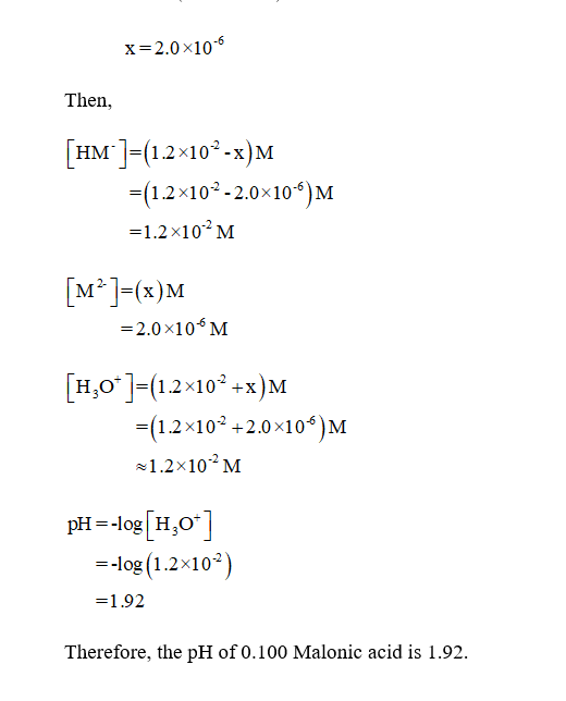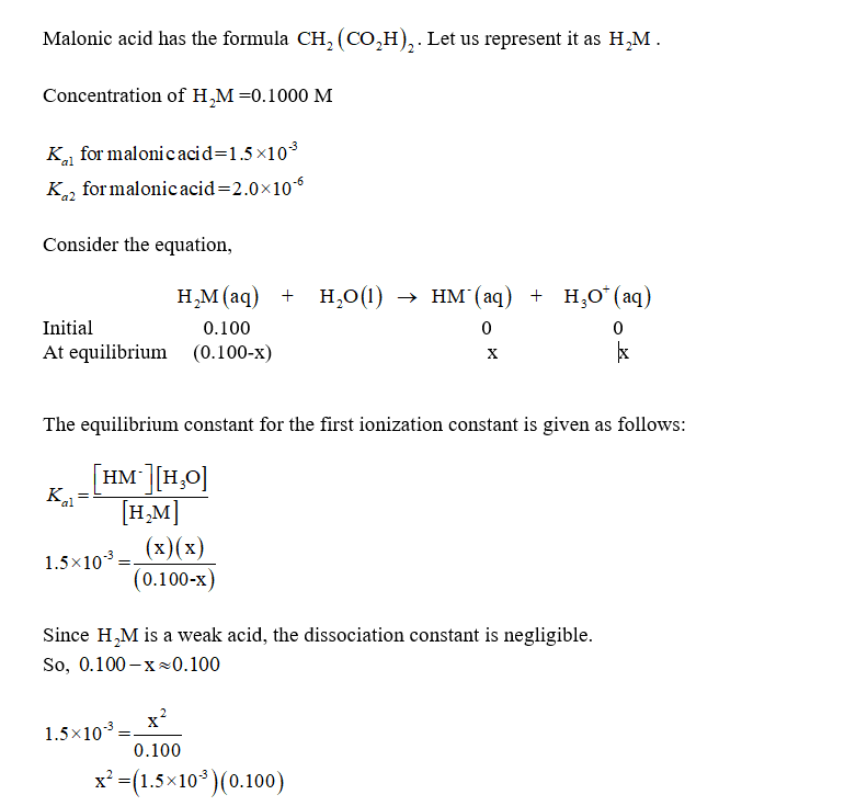 (a) If 15.000 g of malonic acid is added to 100 mL of pure water,