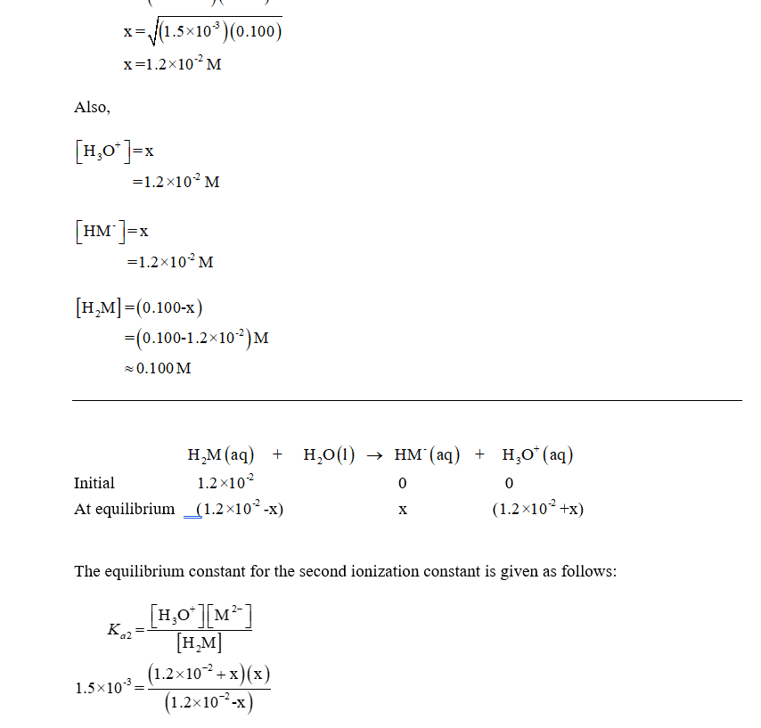 We will abbreviate malonic acid, CH2(CO2H)2, as H2M. Find the pH and concentrations of H2M, HM+, and M2+ in (a) 0.100 M H2M; (b) 0.100 M NaHM; (c) 0.100 M Na2M.