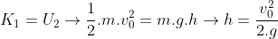 In the starting point, height is zero there isn't potential energy and the top point the kinetic energy is zero because in the top point the velocity is zero.