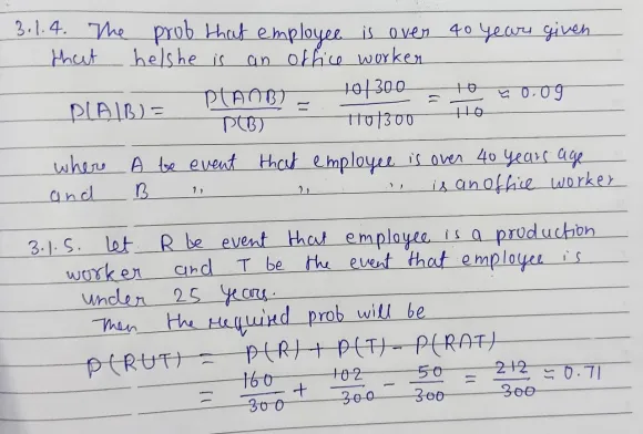 3.1 The following table shows the 300 employees of a small manufacturing company cross-classified on the basis of age and working category.
