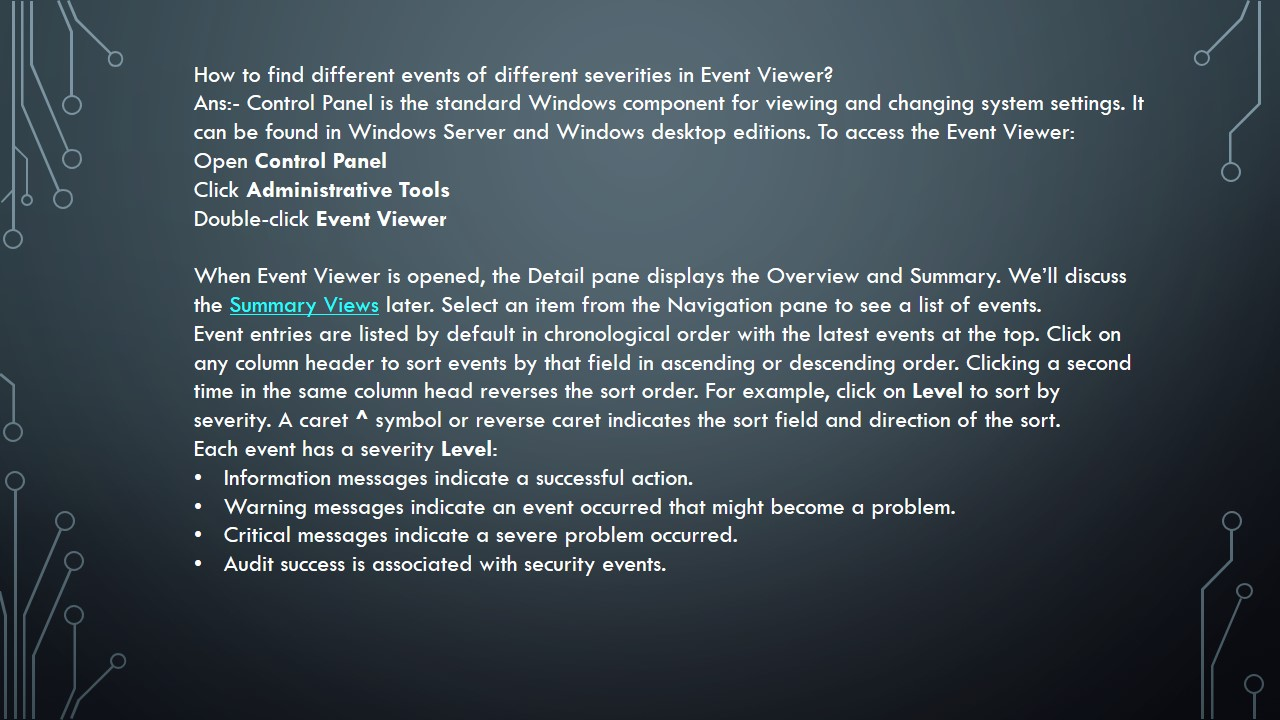 3) Demonstrate how to find different events of different severities in Event Viewer.