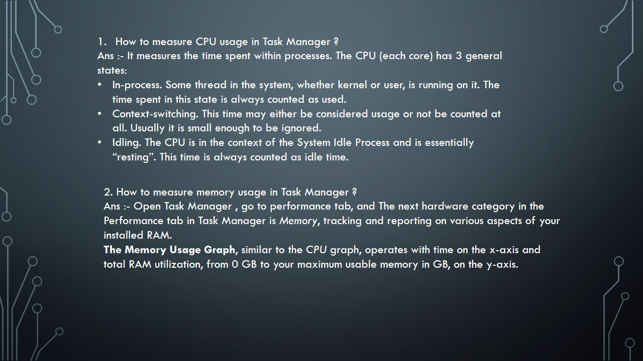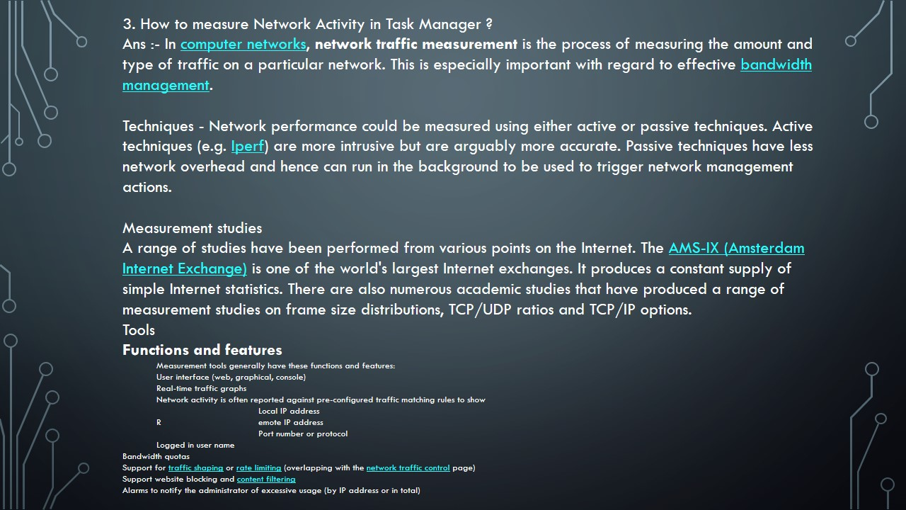 2) Show how to measure CPU, Memory and Network Activity in Task Manager