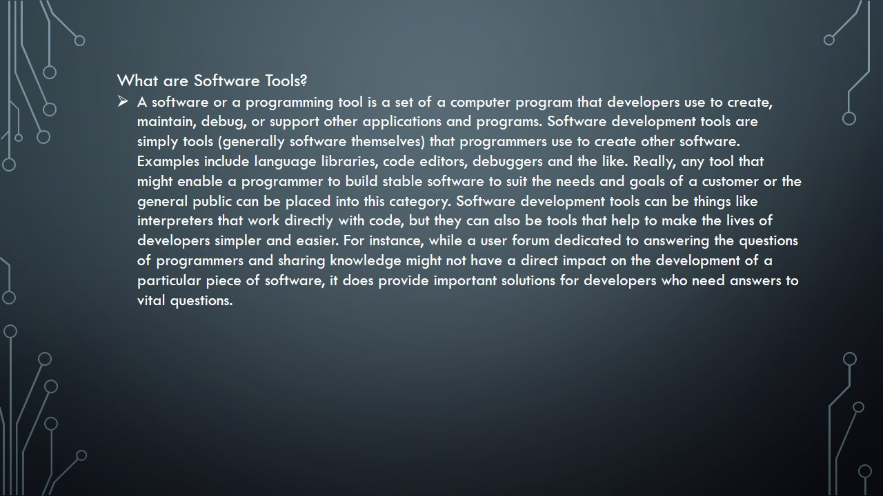 1) A slide with the description of each tool (one slide per tool)