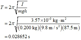 Substitute 3.57 x 10-3 kg m2 for I, 0.200 kg for M, 9.8 m/s2 for g and 87.5 m for h in the above equation,