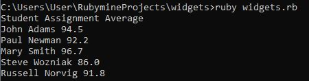 Write a Ruby program named format file.rb, which can be run by typing ruby widgets.rb.