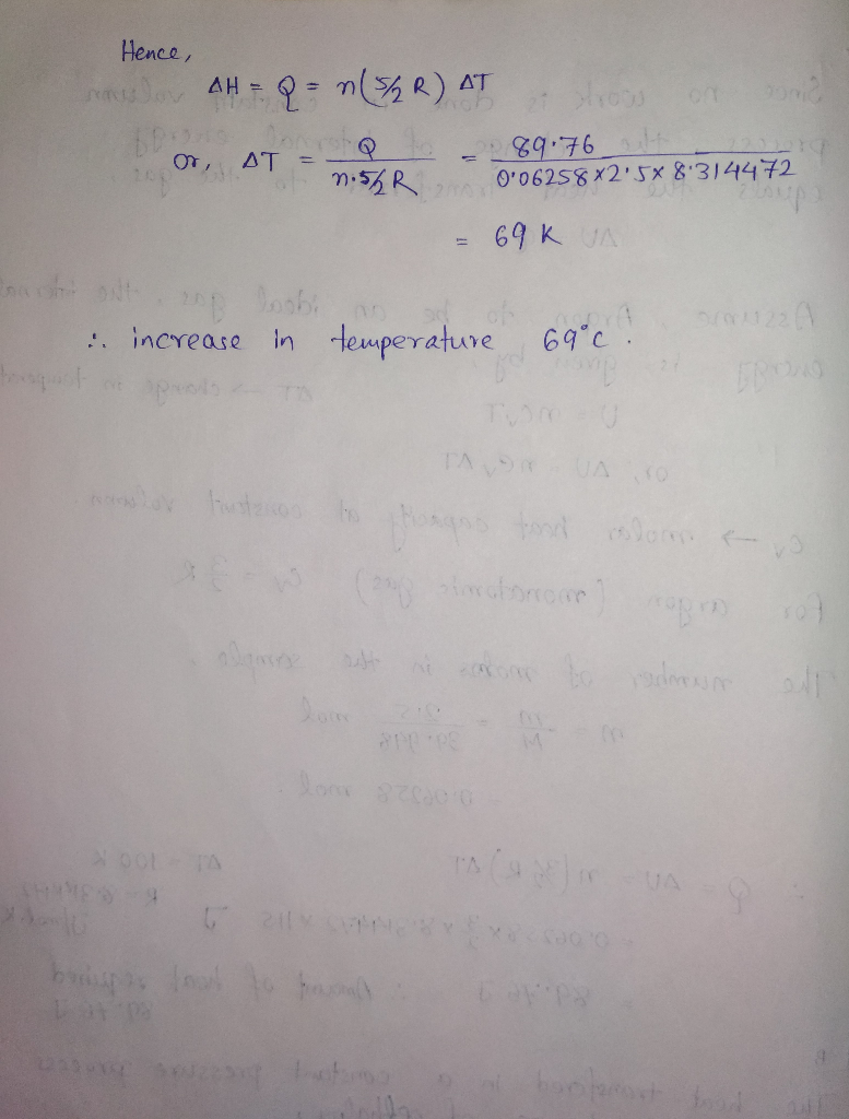 How much will the temperature increase if this amount of heat energy is transferred to the gas at constant pressure?