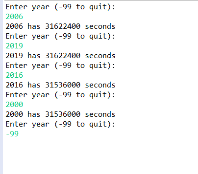 System.out.println("Enter year (-99 to quit): ");