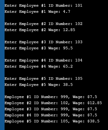 Console.Write("Enter Employee #" + (i+1) + " Wage: ");