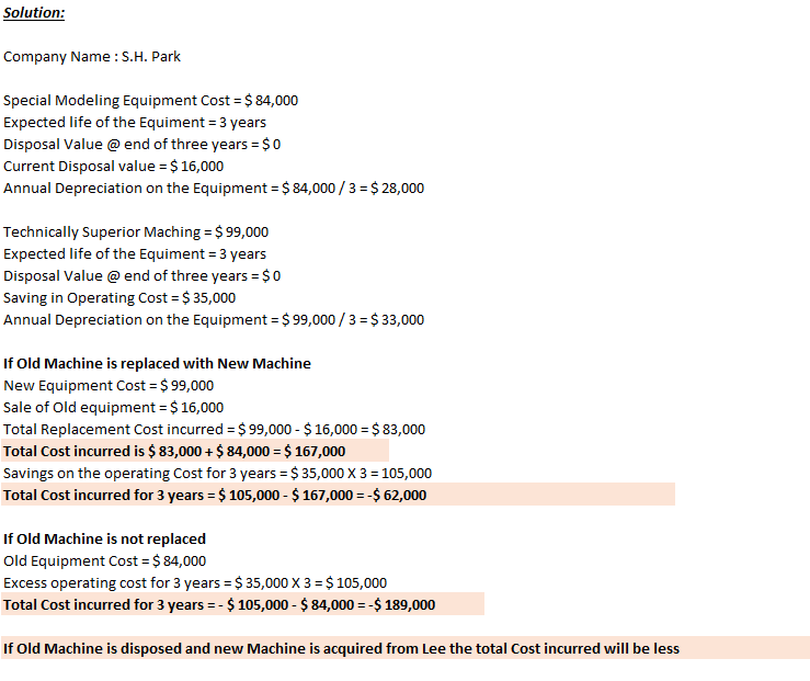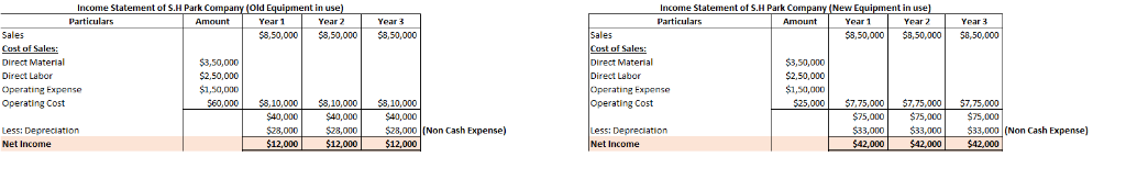 On January 2, 2015, the S. H. Park Company (Park) installed a new $84,000 special molding machine for producing a new product. The product and the machine have an expected life of three years. The machines expected disposal value (amount machine can be sold for) at the end of three years is zero. S. H. Park Company paid cash when the equipment was delivered. Park paid for this machinery via bank transfer. On January 3, 2015, Kimiyo Lee, a salesperson for BT Machine and Tool (BT), tells Park: “I wish I had known earlier of your purchase plans. I can supply you with a technically superior machine for $99,000. Lee indicated the machine just purchased can be sold for $16,000. Lee guaranteed that there machine will save S. H. Park $35,000 per year in cash operating costs. This machine will have no disposal value at the end of three years.” Assume all costs are cost of sales. Park examines some technical data. Park is confident of Lee’s claims. However, Park contends, “I’m locked in now. My alternatives are clear: (a) disposal will result in a loss, (b) keeping and using the ‘old’ equipment avoids such a loss. I have brains enough to avoid a loss when my other alternative is recognizing a loss. We’ve got to use that equipment until we get our money out of it.” The annual operating costs of the old machine are $60,000 all paid in cash. This does not include depreciation. The new machine operating costs will be $25,000 which will be paid in cash. Sales, all in cash, are projected to be $850,000 per year. Annual cash expenses related to sales are $350,000 for material, $250,000 for labor and $150,000 for other operating expenses regardless of this decision. Assume that the equipment in question is the company’s only fixed asset. Ignore income taxes and the time value of money. Any cash payments for the machines occurred in 2015 coinciding with the purchase of the equipment. Should Park dispose of the “old-old” machine (stay the course) or should Park acquire new machine’s (New-New) from Lee? Using the template, prepare income statements as they would appear in each of the next three years under both alternatives. Assume straight-line depreciation over a three year period. What is the cumulative increase or decrease in net income for the three years for each alternative? Prepare statements of cash receipts and disbursements as they would appear in each of the next three years under both alternatives. Assume straight-line depreciation over a three year period. What is the total cumulative increase or decrease in cash for the three years for each alternative? If you were the sales person (Kimiyo Lee), how would respond to Mr. Park so as to get him to purchase your product? Using the provided information, if possible, prepare an alternative analysis which provides a similar result. Regardless of the financial analysis, what factors which effect or influence the decision to replace the equipment or stay with old (new) machine