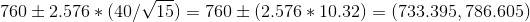 Confidence interval length = upper level - lower limit = 786.605-733.395 = 53.21