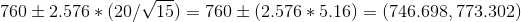 Confidence interval length = upper level - lower limit = 773.302-746.698 = 26.604