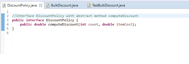 //Interface DiscountPolicy with abstract method