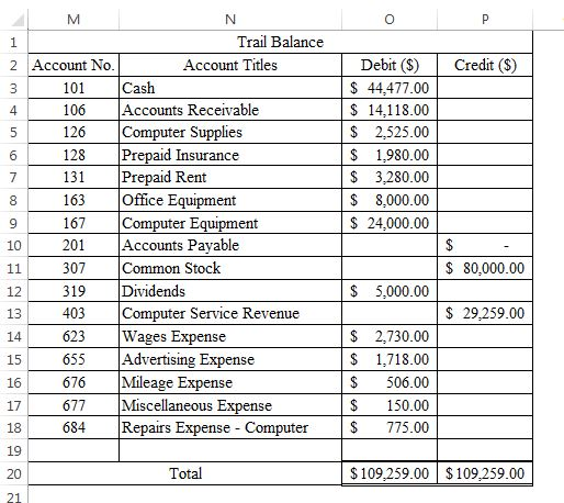 | Computer Supplies | 126 | Computer Services Revenue | 403 | |