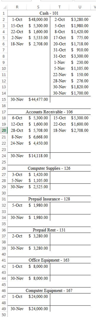 | Oct. | 1 | S. Rey invested $48,000 cash, a $24,000 computer system, and $8,000 of office equipment in the company in exchange for its common stock. | ||