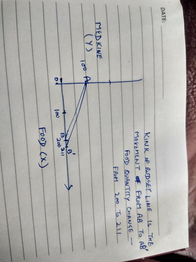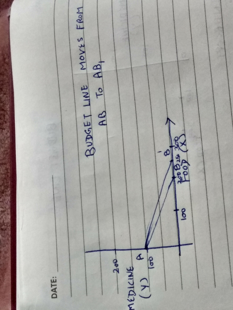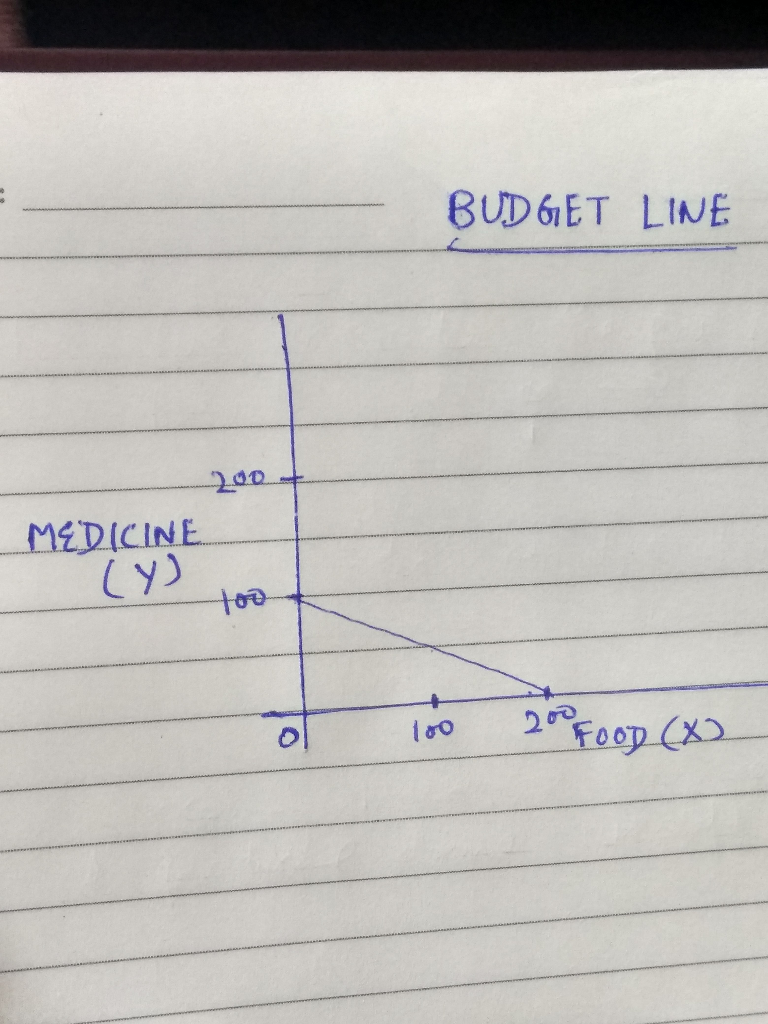 Let X be the units of food , Y be the units of medicine and M be the budget or income of the consumer.