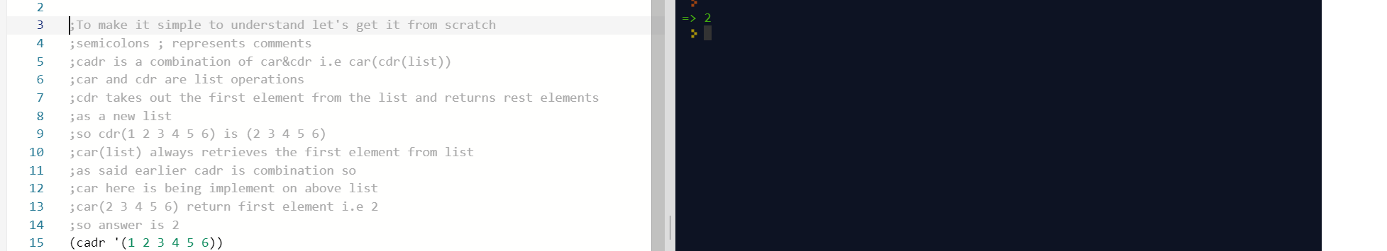 ;car(2 3 4 5 6) return first element i.e 2