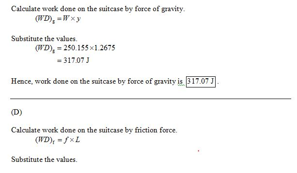 D.How much work is done by the frictional force on the suitcase by the ramp during the pull up the ramp?