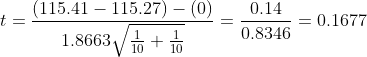 observed t value 0.1677 is less than tabular t value +2.101. Hence,