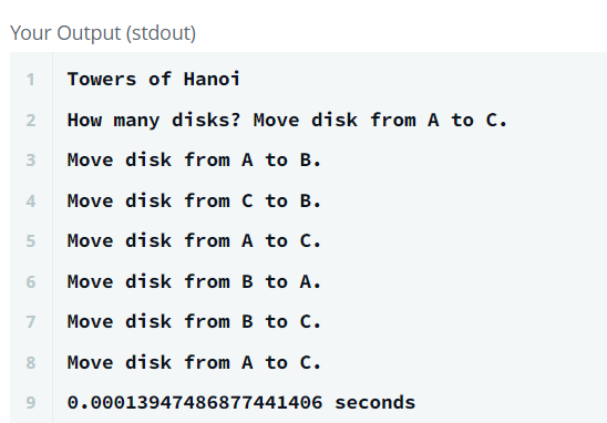 print("Towers of Hanoi")