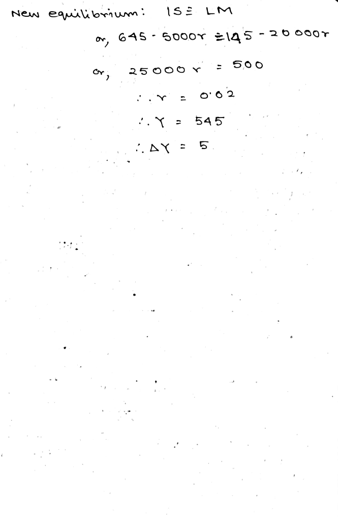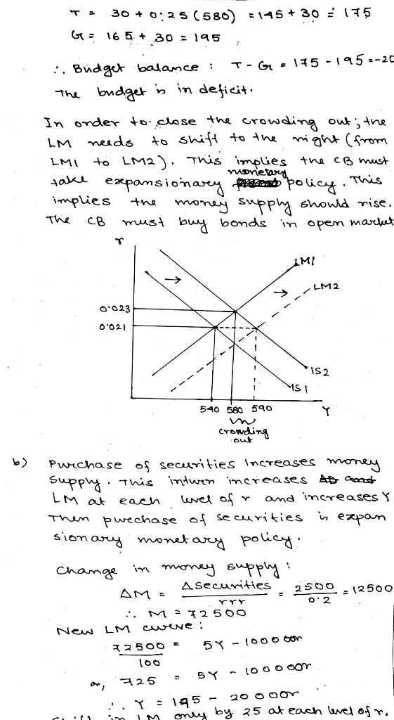 b) If the Fed purchases securities worth of 2500; is it an expansionary, or a contractionary (pick one) monetary policy? If there is no leakage of excess reserves, then by how much does it change the money supply? By how much do the IS and LM curves shift and by how much does Y change?