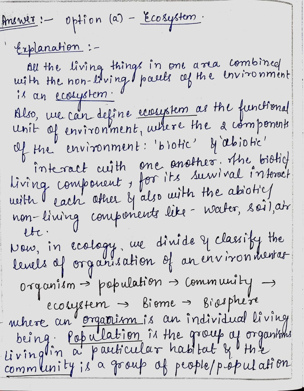 All the living things in one area combined with the non-living parts of that environment is a/an: