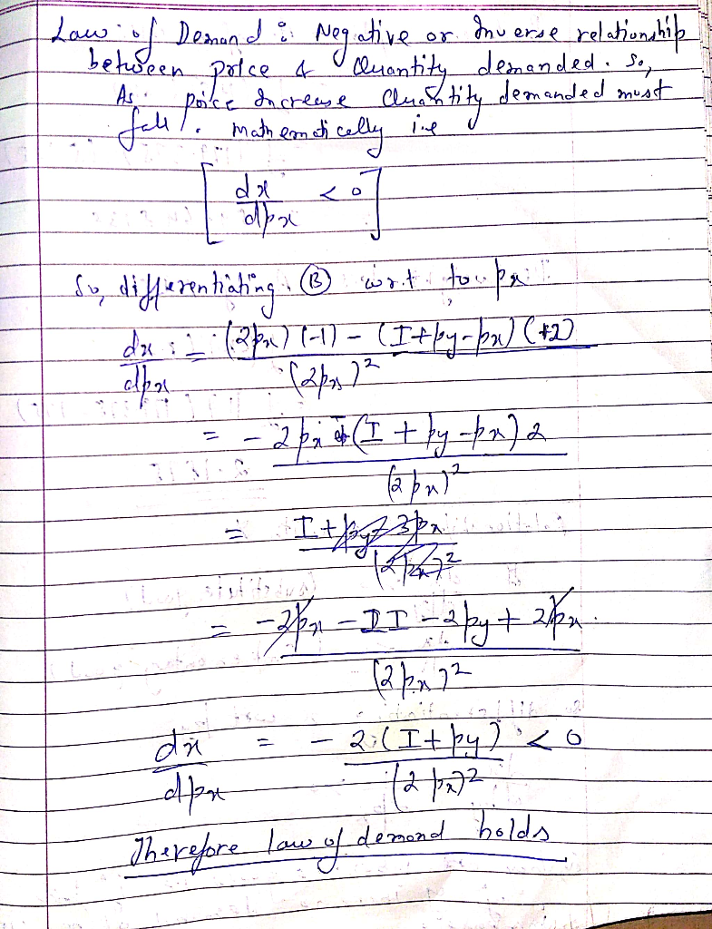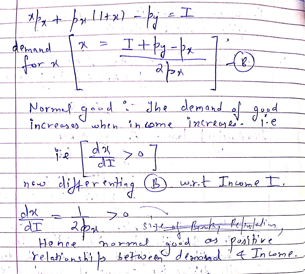 Let x and y denote the amount of goods X and Y. Find the demand functions of X (do not need to find that of Y) when your preferences are represented by the utility function U = x + xy + y. Is X normal good? Can you confirm law of demand for X? What is the relationship of X with Y? Answer all of them by using the demand curve you derived.