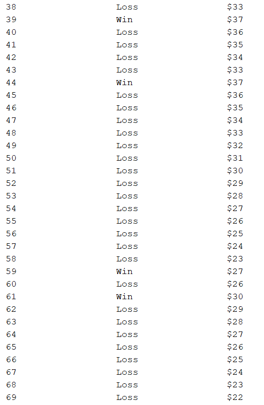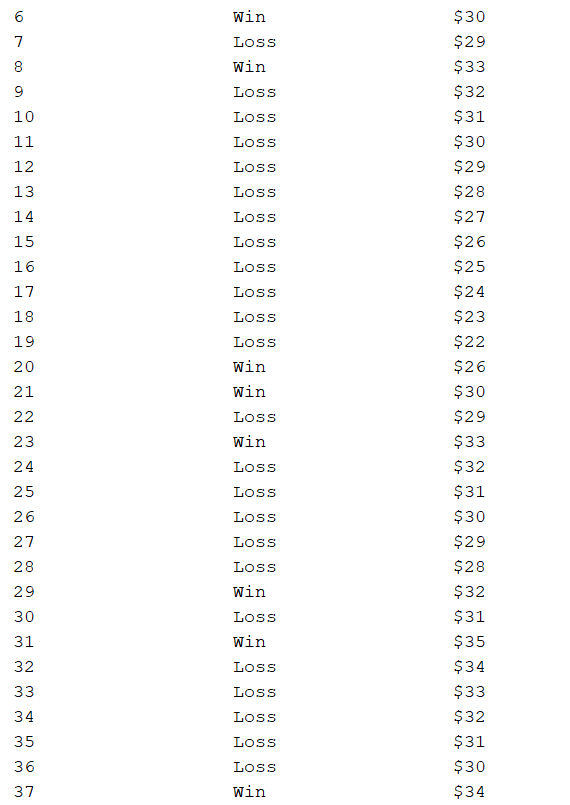 Your challenge is to write a program that demonstrates the futility of playing the game. Your Python program should take as input the amount of money that the player wants to put into the pot, and play the game until the pot is empty.