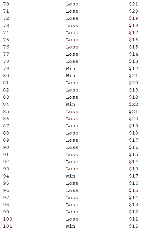 # Set, rolls = 1, win_or_loss = "Put" and maximum_money = money intially