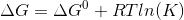 K = equilibrium constant.
