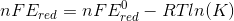 we have to derive the relation between E ,E0 , n , F , R, T , which is called Nernst equation.