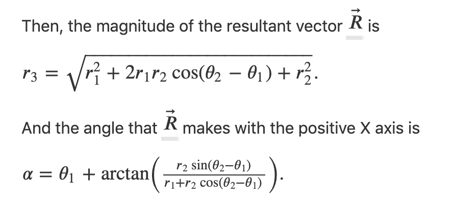 r = (A(1)^2 + 2*A(1)*B(1)*cos(B(2)-A(2)) + B(1)^2)^(1/2);